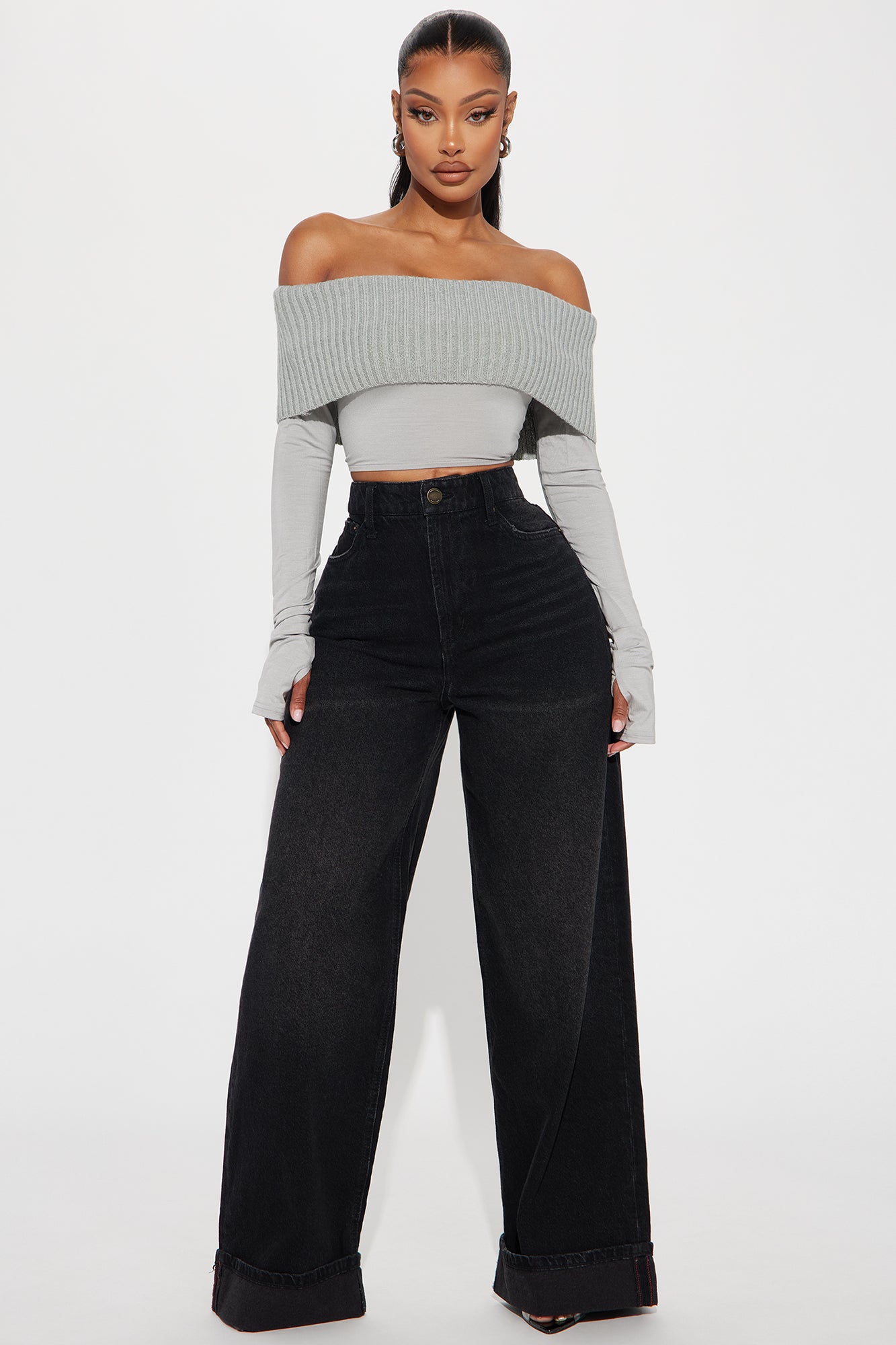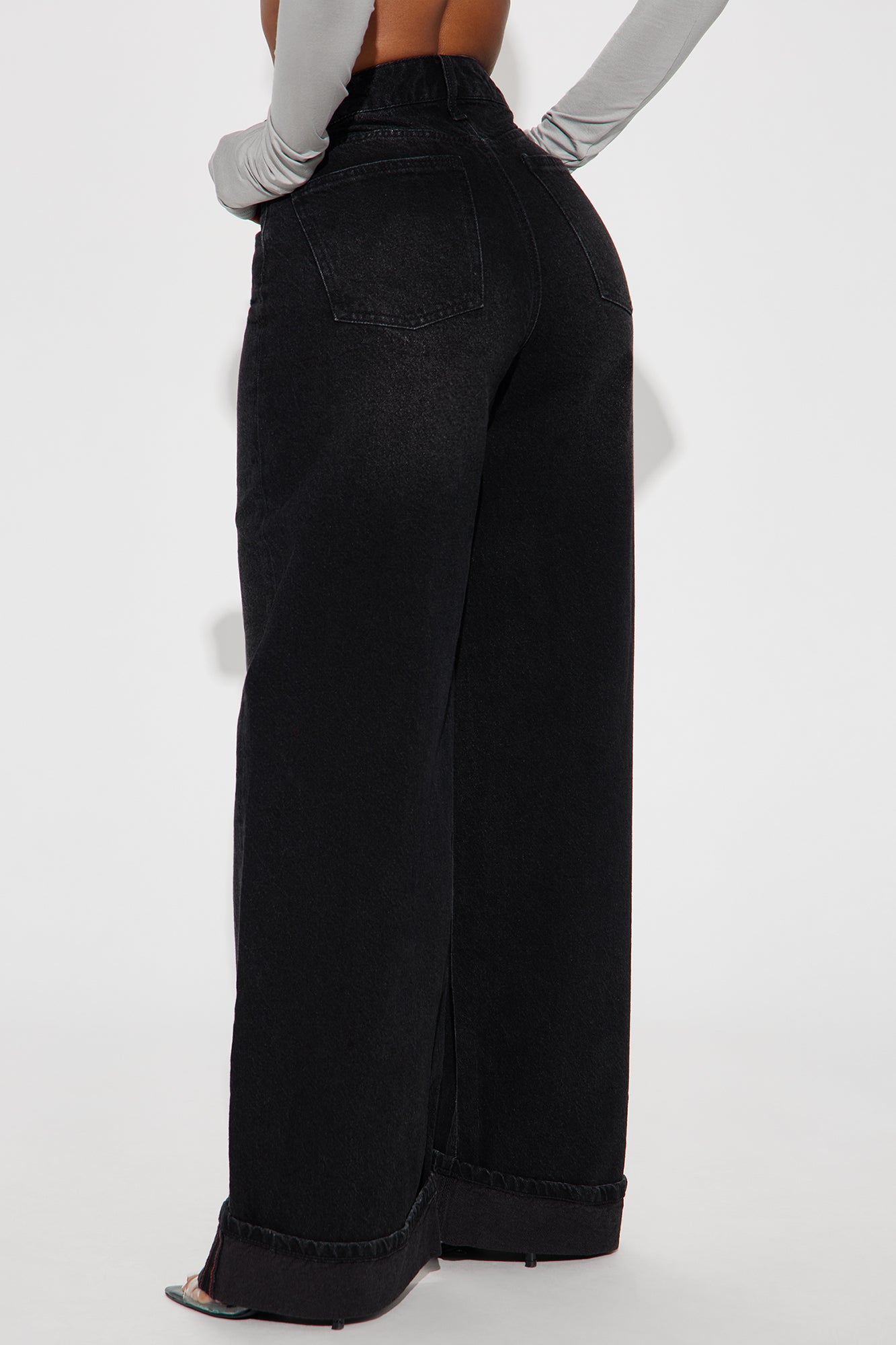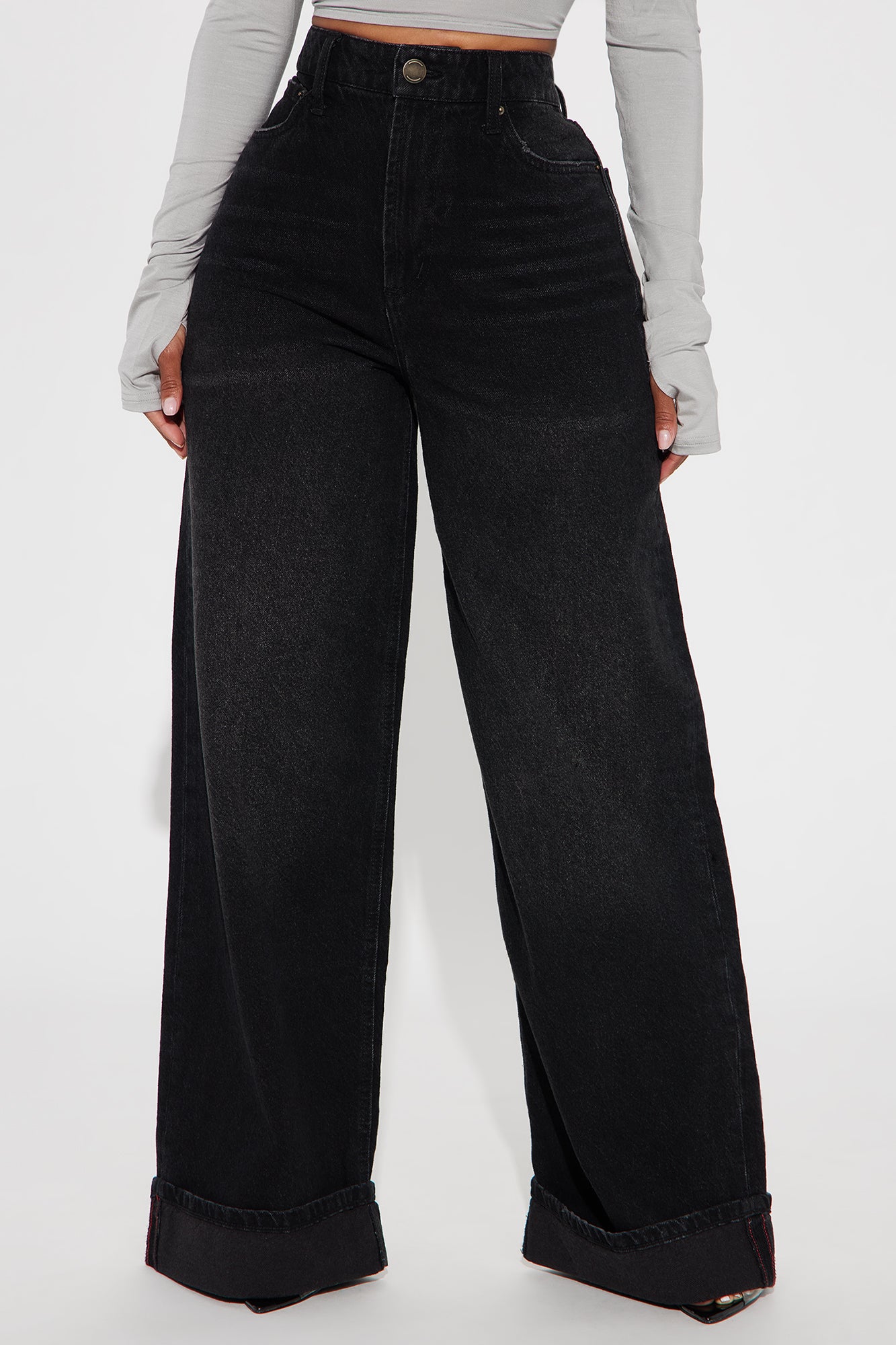Anika Cuffed Wide Leg Jeans - Black Wash