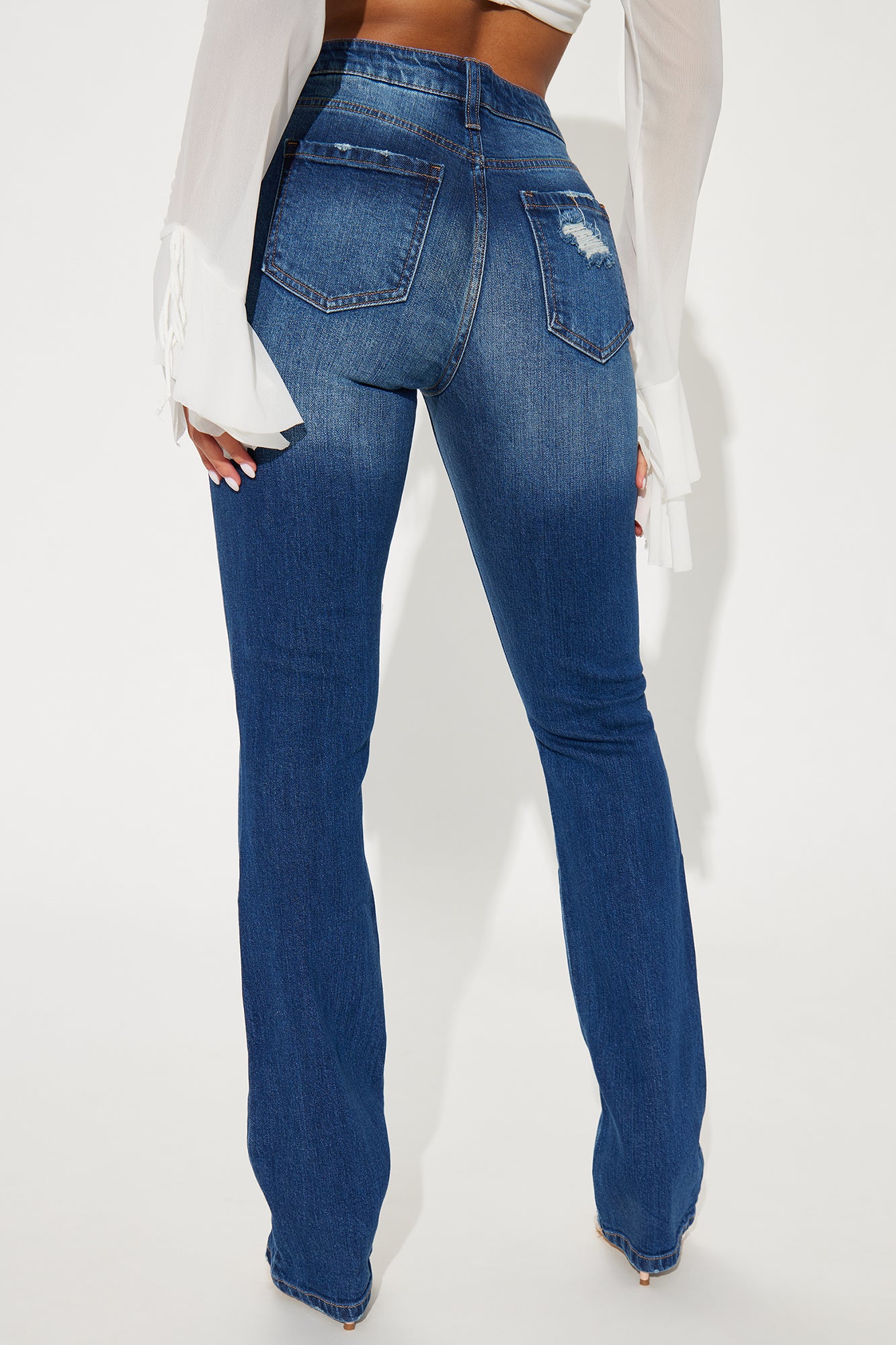 Down To Business Stretch Ripped Bootcut Jeans - Medium Wash