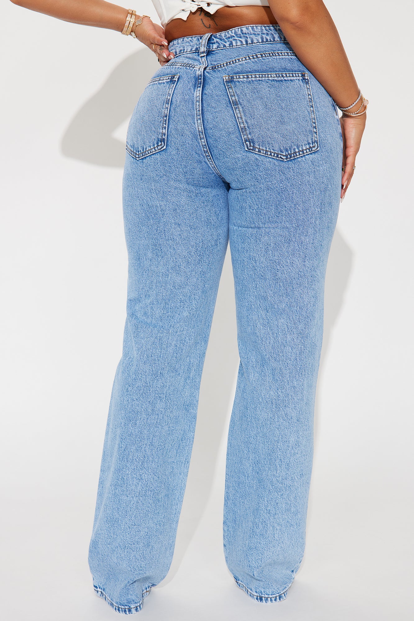 Walk My Way Studded Straight Leg Jeans - Medium Wash