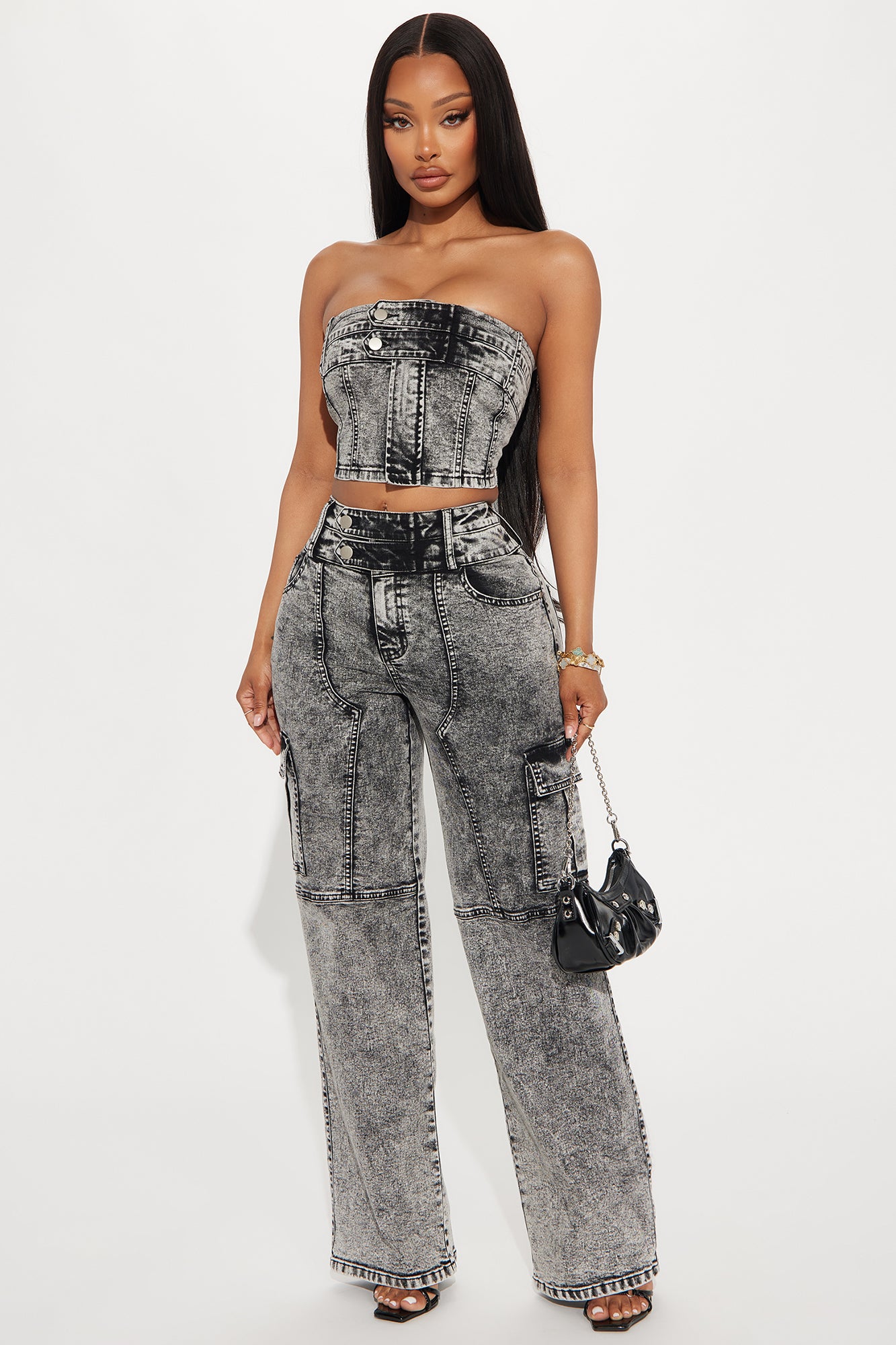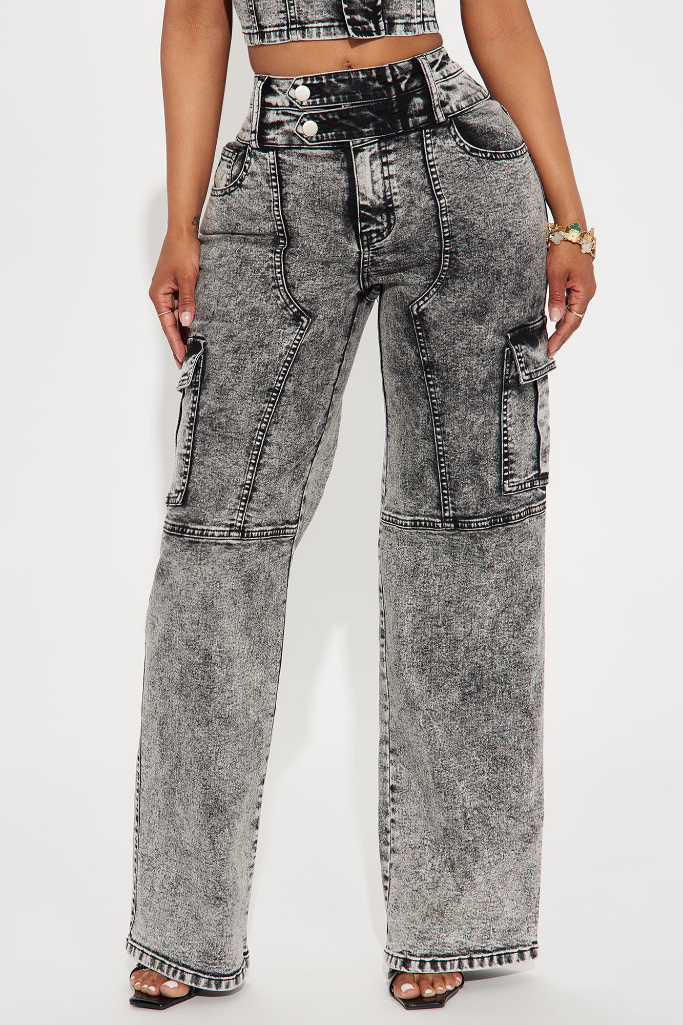 Making Claims Stretch Cargo Straight Leg Jeans - Black Wash