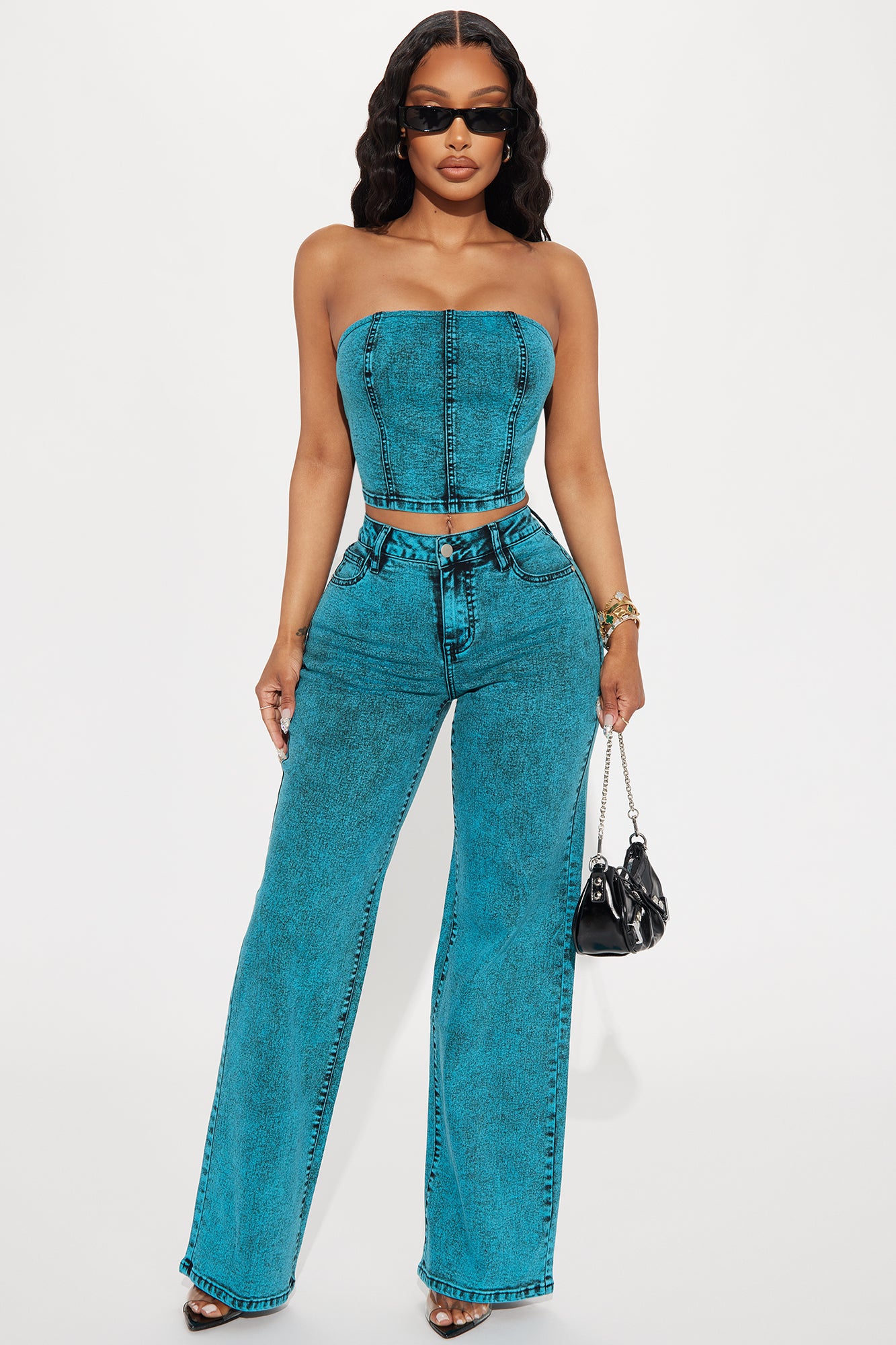 Cyan Stretch Straight Leg Jeans - Teal