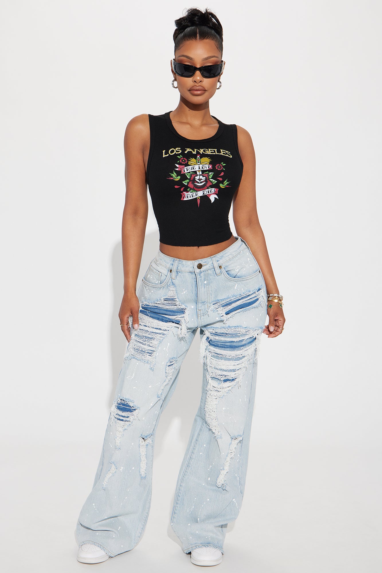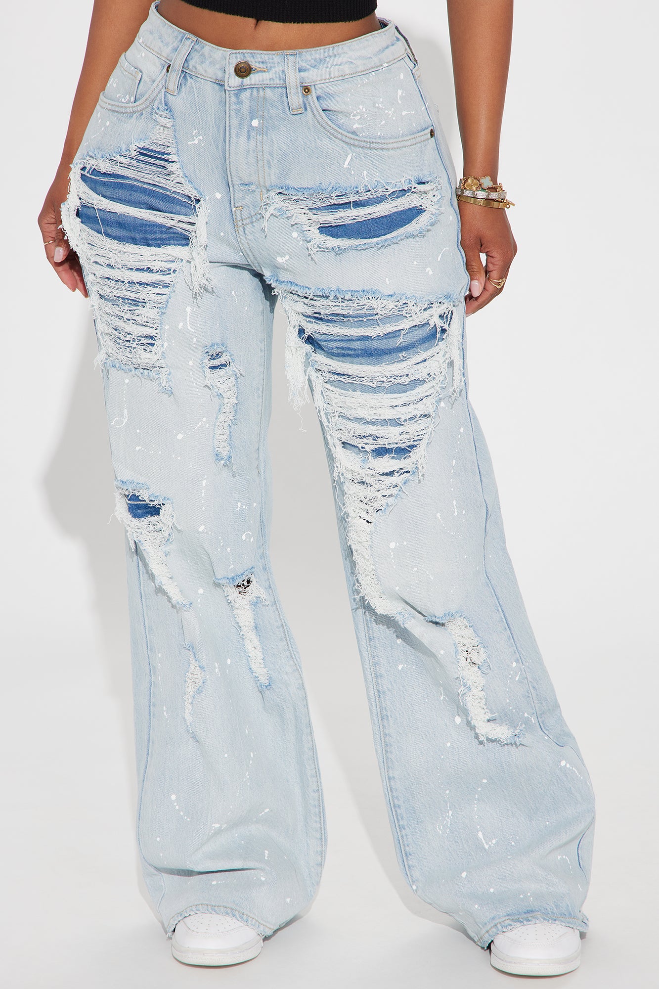 90's Loose Ripped Slouch Fit Jeans - Light Wash