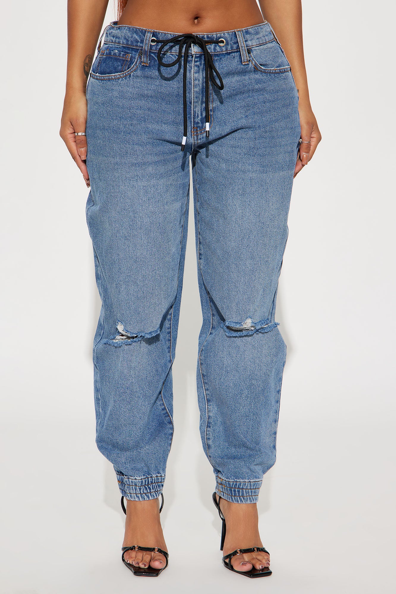 Don't Get Attached Ripped Jogger Jeans - Medium Wash
