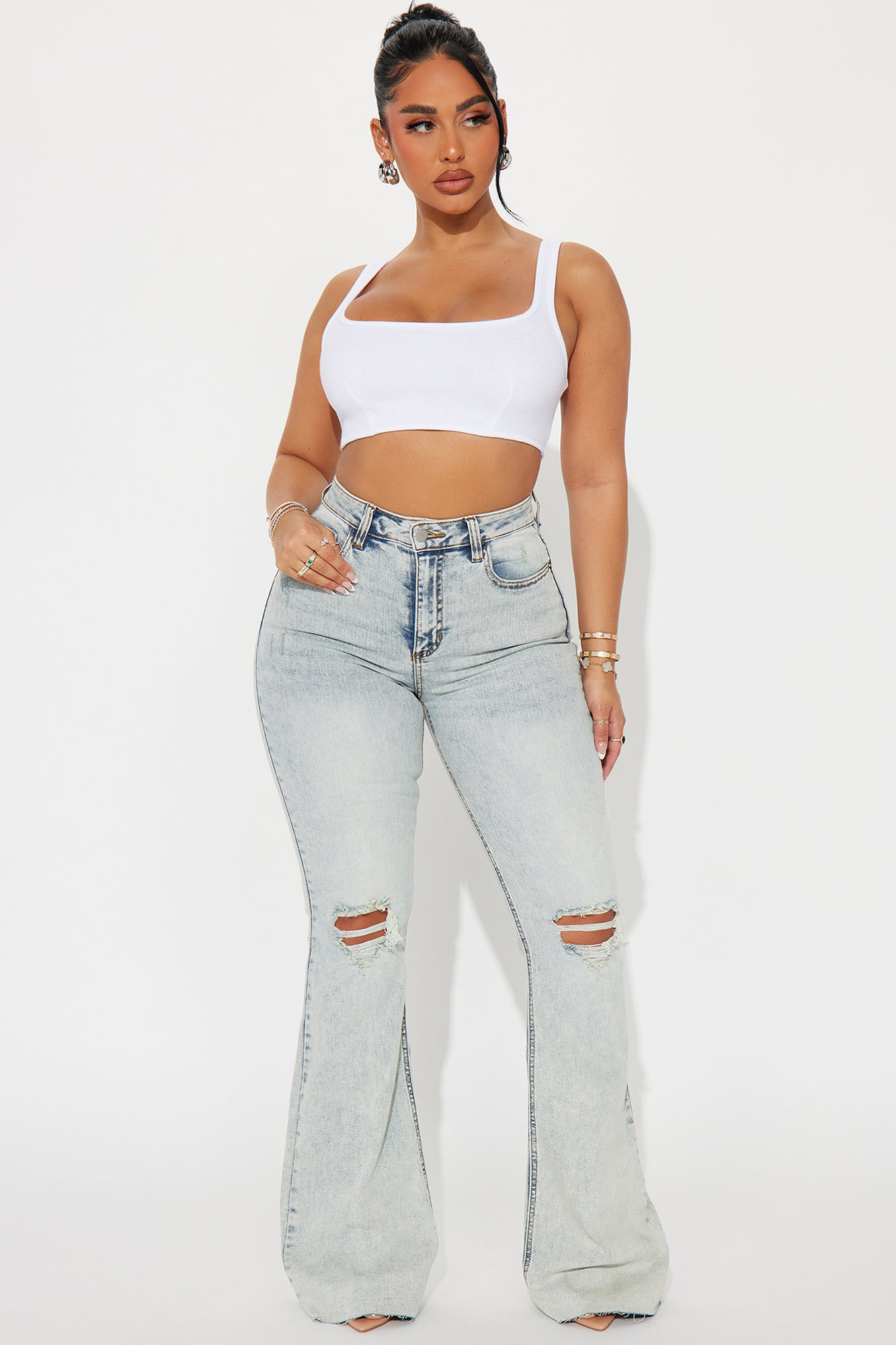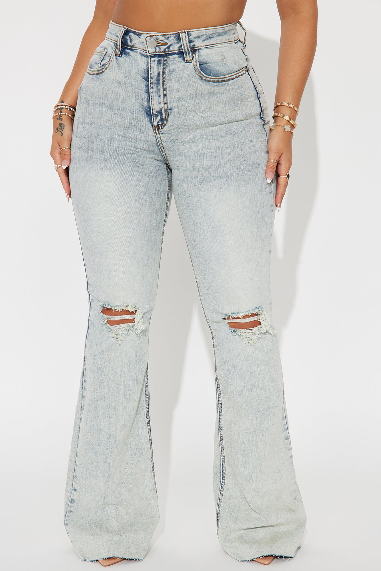 Big Possibilities Stretch Acid Wash Flare Jeans - Acid Wash