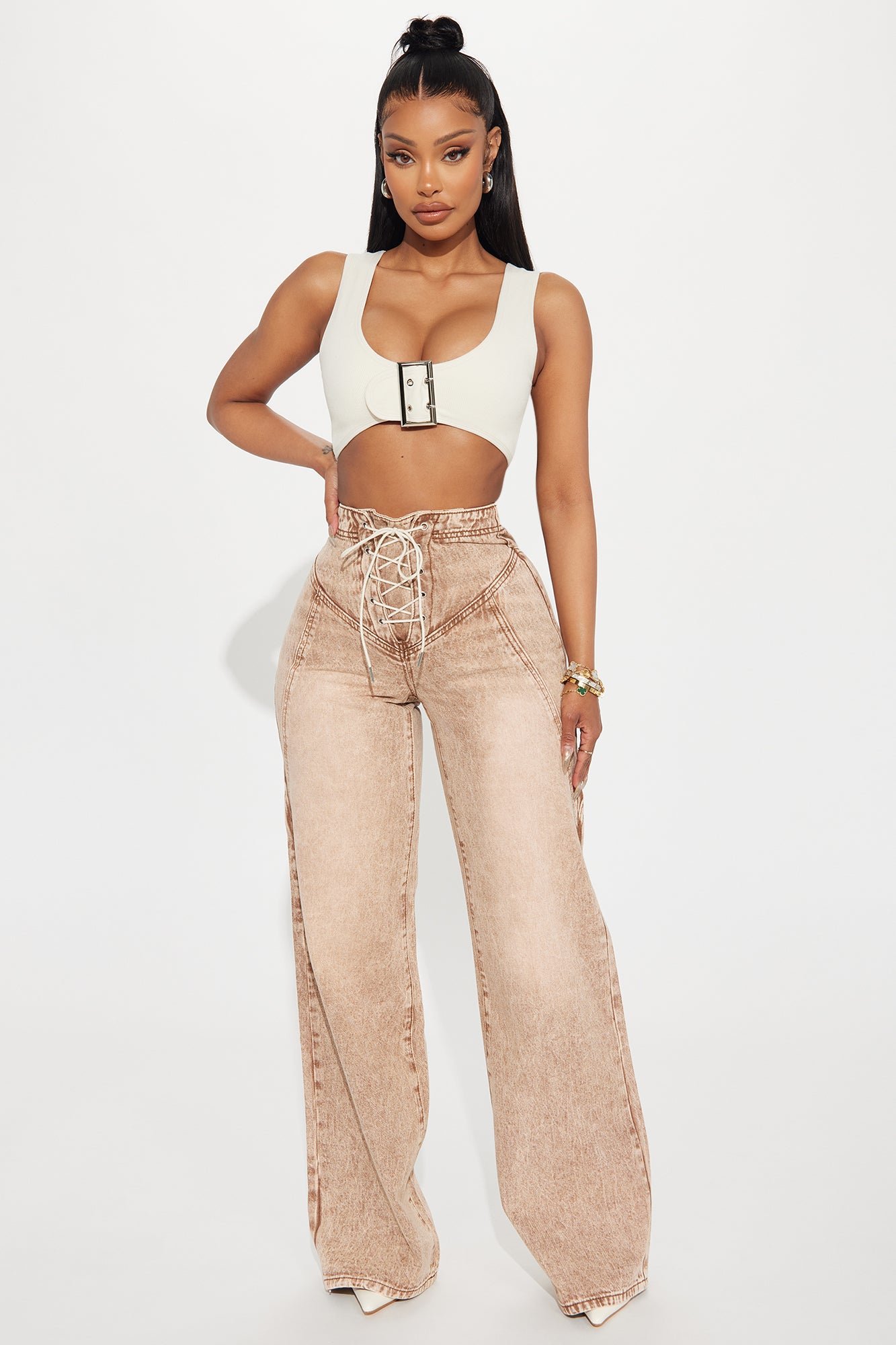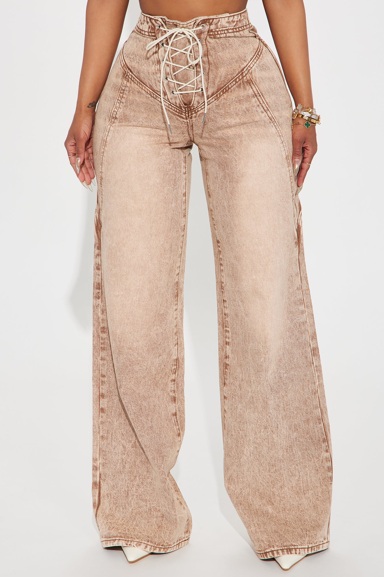 No Exception Lace Up Baggy Jeans - Brown