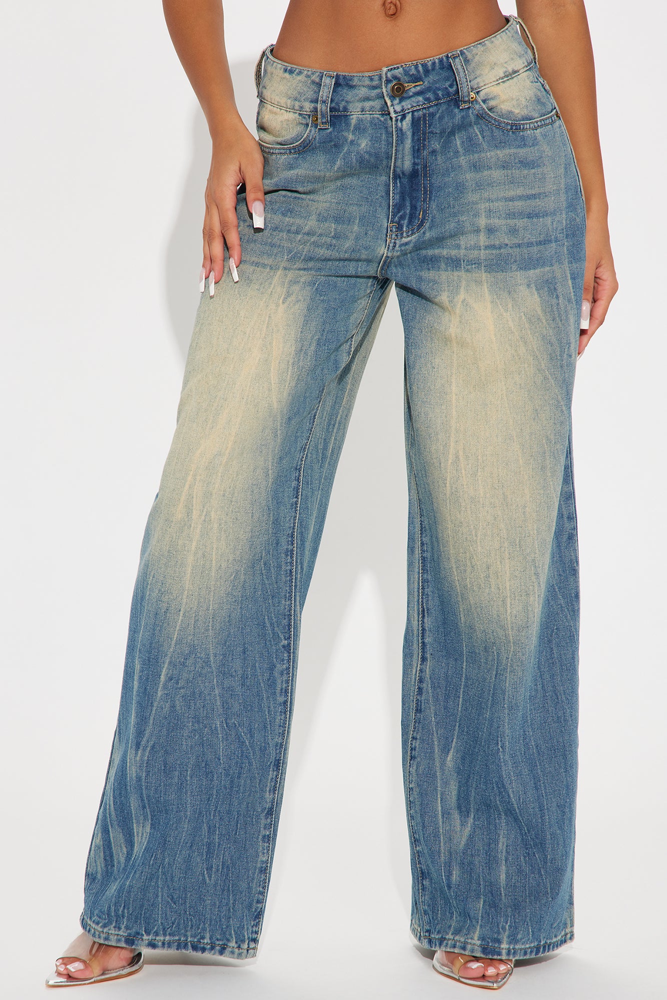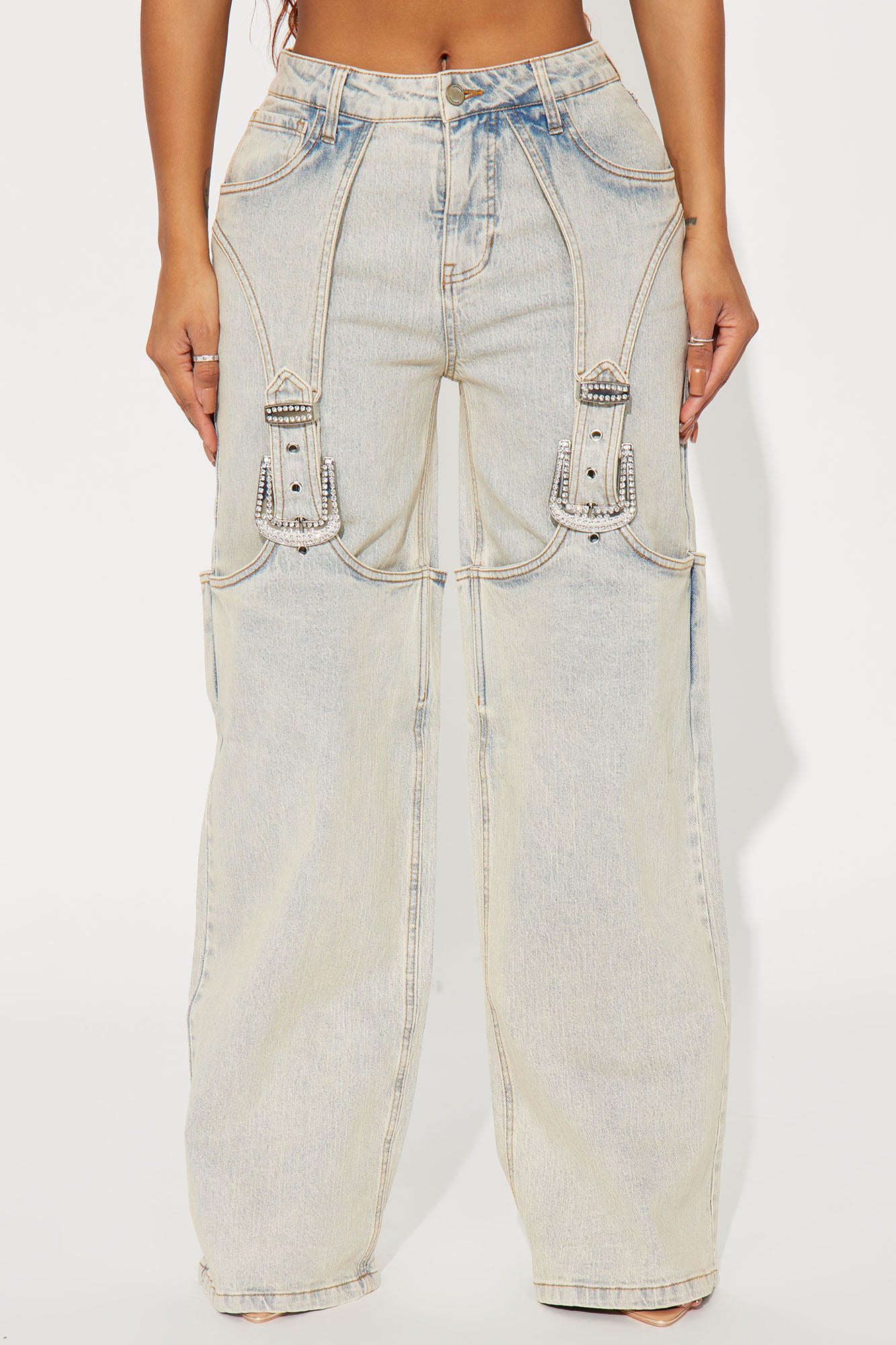 Out Of Range Buckle Wide Leg Jeans - Vintage Wash